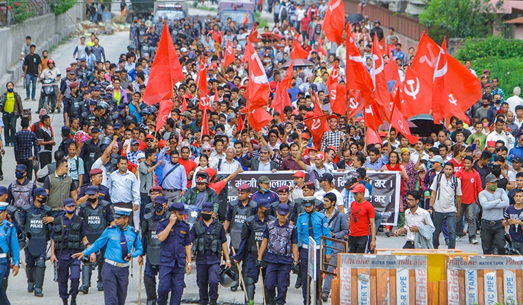 १६ असार, काठमाडौं । नेत्रविक्रम चन्द विप्लव नेतृत्वको नेकपा माओवादीले आफ्ना कार्यकर्ता रिहाइको माग गर्दै आज राजधानीमा प्रदर्शन गरेको छ । कर नतिरेको एनसेलका टावर आक्रमणमा संलग्न रहेको भन्दै आफ्ना कार्यकर्ता पक्राउ गरिएको भन्दै माओवादीले विरोध प्रदर्शन गरेको हो । कार्यकर्ता रिहाइसहित भ्रष्ट्राचार र कालोबजारी नियन्त्रणको माग गर्दै विहीबार सरकारलाई ज्ञापनपत्र समेत बुझाएको छ बुझाएको छ ।