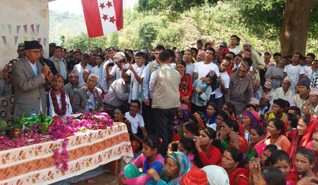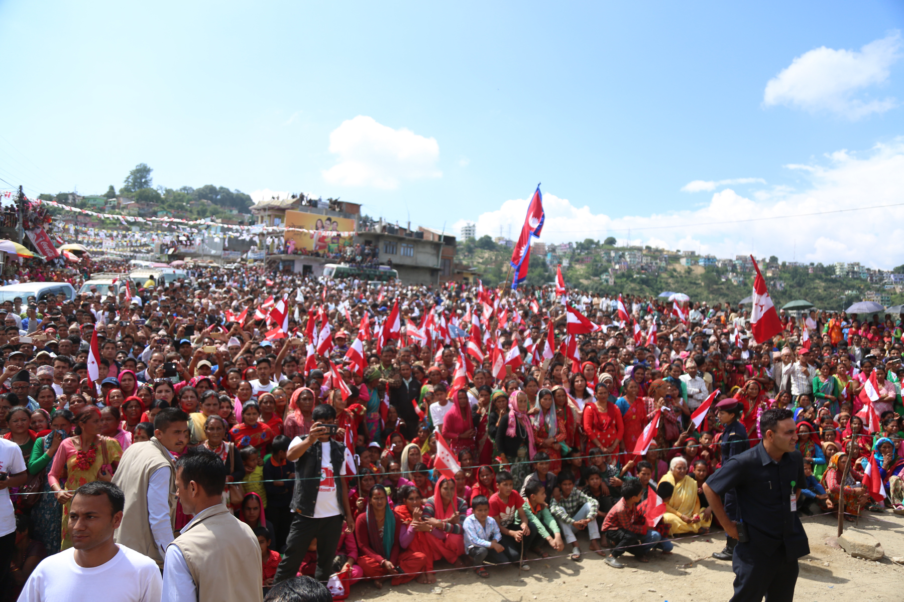 ११ असार, २०७४ (डडेल्धुरा) । कांग्रेस सभापति तथा प्रधानमन्त्री शेरबहादुर देउवाले चुनाव प्रचारको समय सकिने दिन आइतबार आफ्नो गृहजिल्लामा पुगेर चुनाव जित्नका लागि अनेक आश्वासन दिएका छन् । तर उनको आश्वान कुनै नयाँ नभएर एमालेले बेचिरहेकै वृद्धभत्ता दोब्बर पार्ने आश्वासन प्रमुख थियो । गृहजिल्लाको अमरगढीमा आयोजित चुनावी सभामा महिला र वृद्धवृद्धाको पुष्पगुच्छा लिँदै देउवाले वृद्धभत्ता दोब्बर पार्ने आश्वास दिएका हुन् ।