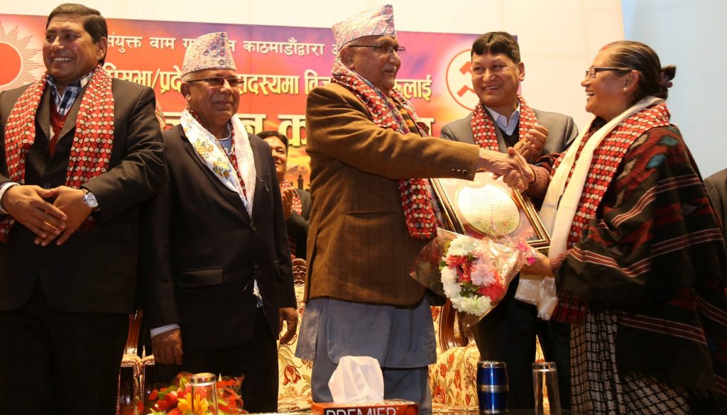 वामगठबन्धनले आयोजना गरेको कार्यक्रममा एमालेका नेता माधव नेपाल तथा माओवादी केन्द्रका नेता नारायणकाजी श्रेष्ठ पनि सहभागी थिए ।